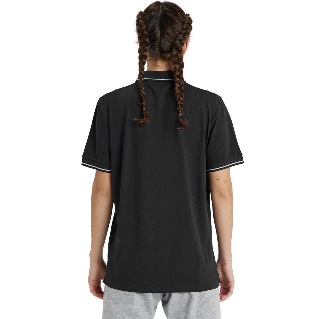 Finished with an arena logo and contrasting trim on the sleeves and polo collar.