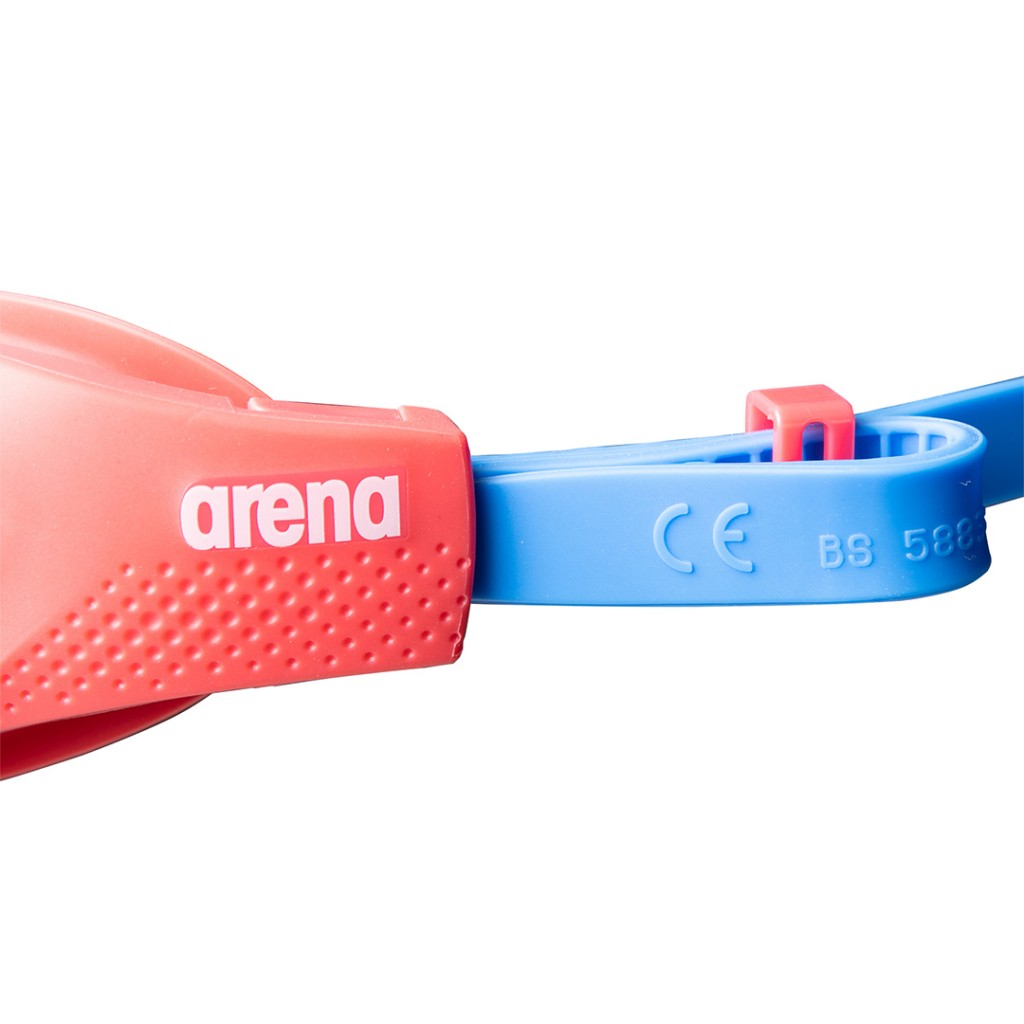 Looking for beautiful kids goggles that adapts to most faces? arena's comfortable The One Junior Goggles are designed for swimmers from ages 6 to 12. The soft Orbit-Proof seals have been tested to adapt to all kinds of facial profiles to prevent water leakage. The wide lenses provide great lateral vision. The split strap is easily adjustable for a secure and comfortable fit, even with long hair. The nose bridge adjusts to the face while on. These goggles are equipped with anti-fog coating, UV protection and are PVC free. This style is available with clear lenses for low-light environments and for those who prefer maximum brightness or medium-dark lenses for all uses and variable or intermediate light levels.