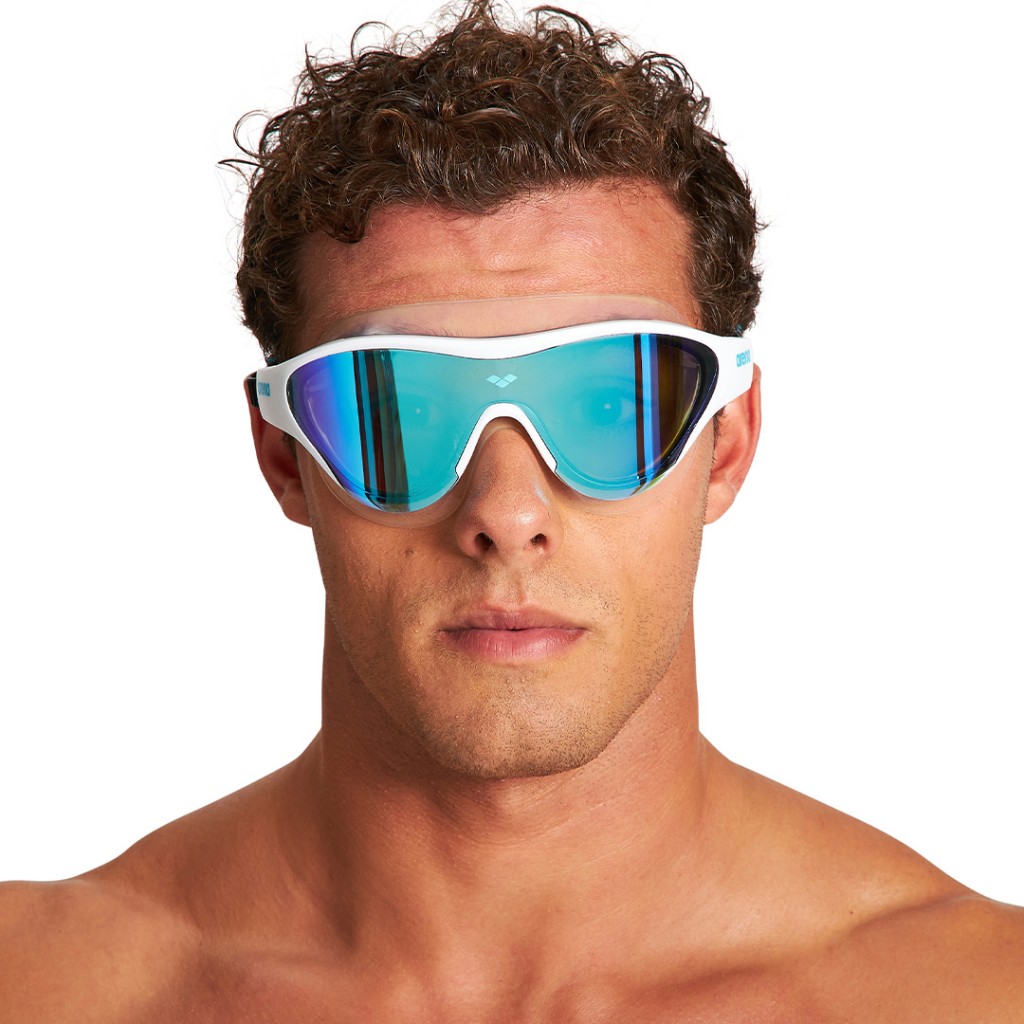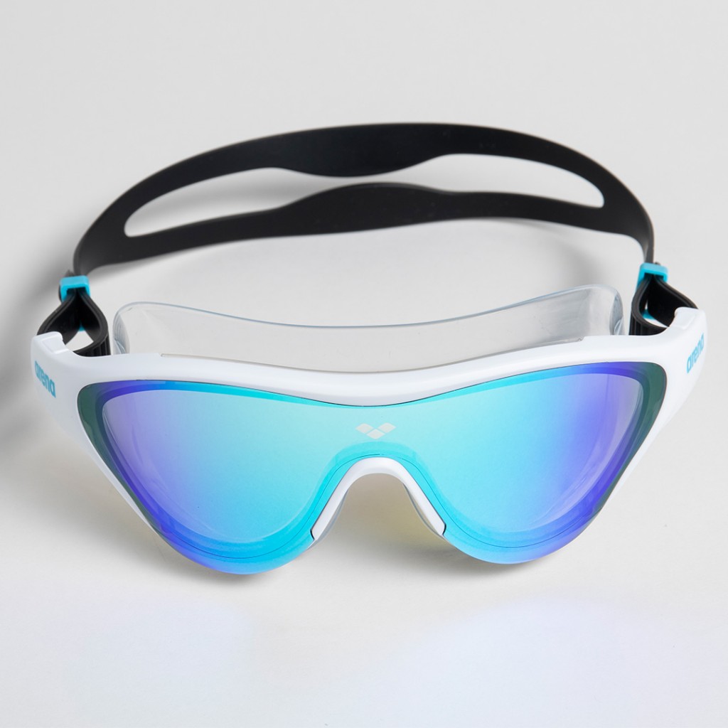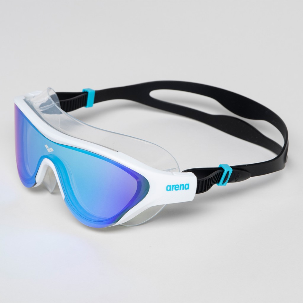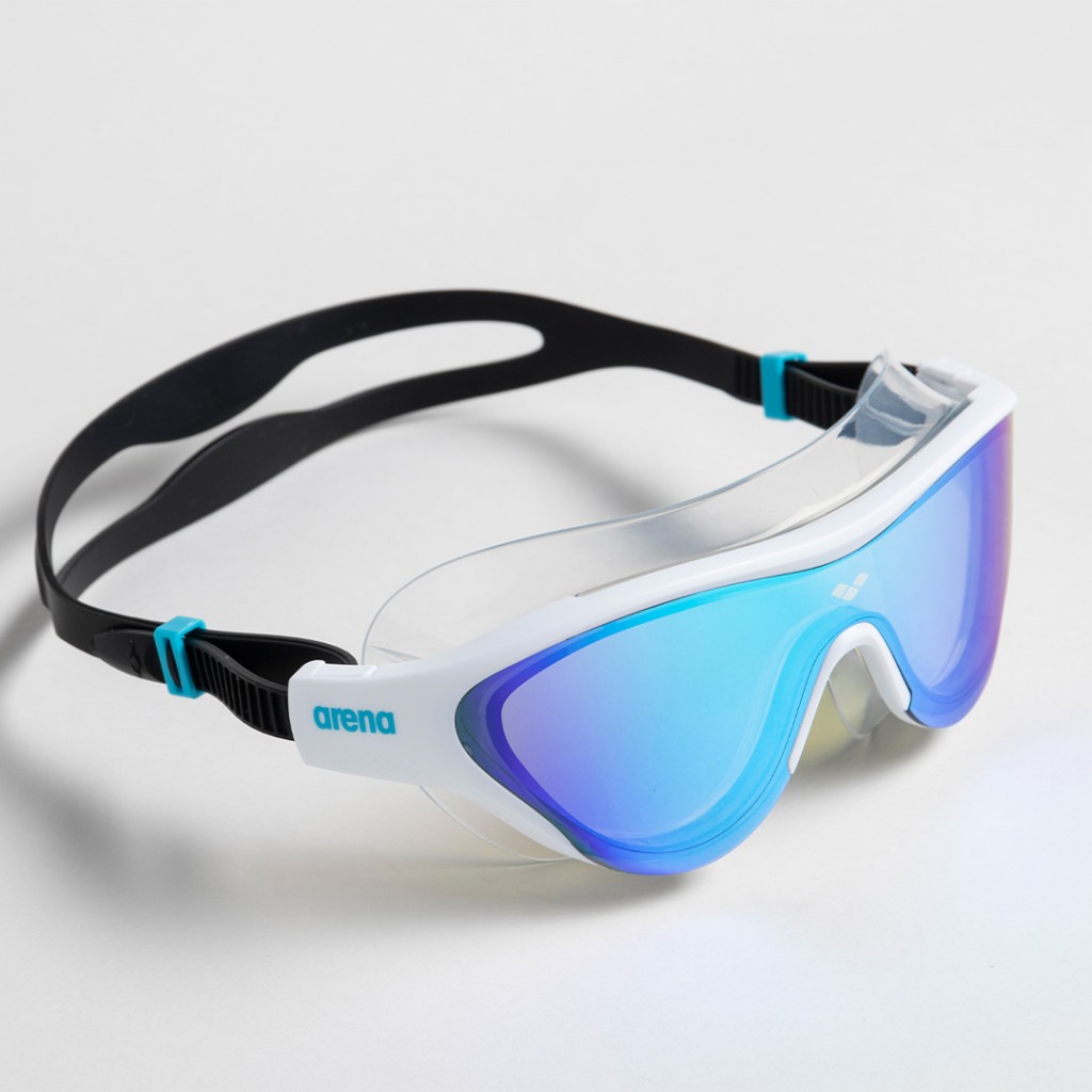 The Arena The One Mask training goggle is has a unique design that covers more of the face providing a watertight seal and an improved peripheral vision. The mirrored surface makes this mask a smart option for outdoor swimming and triathletes.