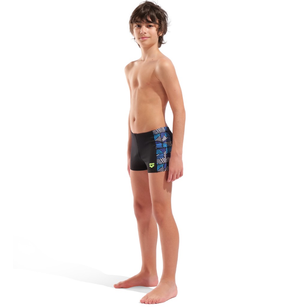 The arena Candies Swim Shorts for boys are stylish, durable, and chlorine-proof. Made with MaxLife Eco fabric from recycled polyester, they deliver comfort, UV protection, and long-lasting performance.