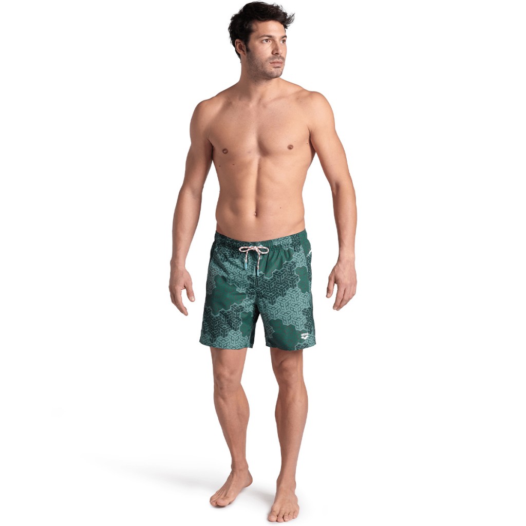 Introducing Arena Men's Pro_File Allover Printed Beach Boxers: a blend of sporty comfort and iconic style. Crafted for swimming, leisure, and beach activities, they're made from soft, quick-drying recycled fabric. Featuring side pockets, a mesh inner brief, and an adjustable drawstring for a perfect fit, they embody both function and fashion. Certified by the Global Recycle Standard, they're proof of our commitment to sustainability.