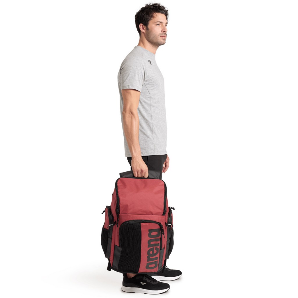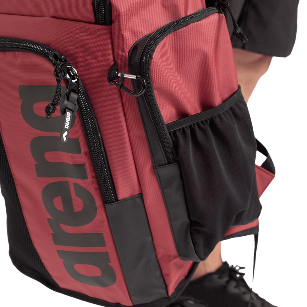 Our Spiky III 45 Backpack maximizes space in a compact design. Engineered for easy access and organization, this top-loading bag has mesh compartments to keep moisture under control post-swim or post-workout. Made of a water-repellent textile and with a reinforced bottom, you don't have to worry about falling on the changing room floor. The multiple pockets ensure there is a safe spot for all of your items. Choose from a range of slick, high-contrast colour combinations. Use the free swim bag inside for your pool kit.