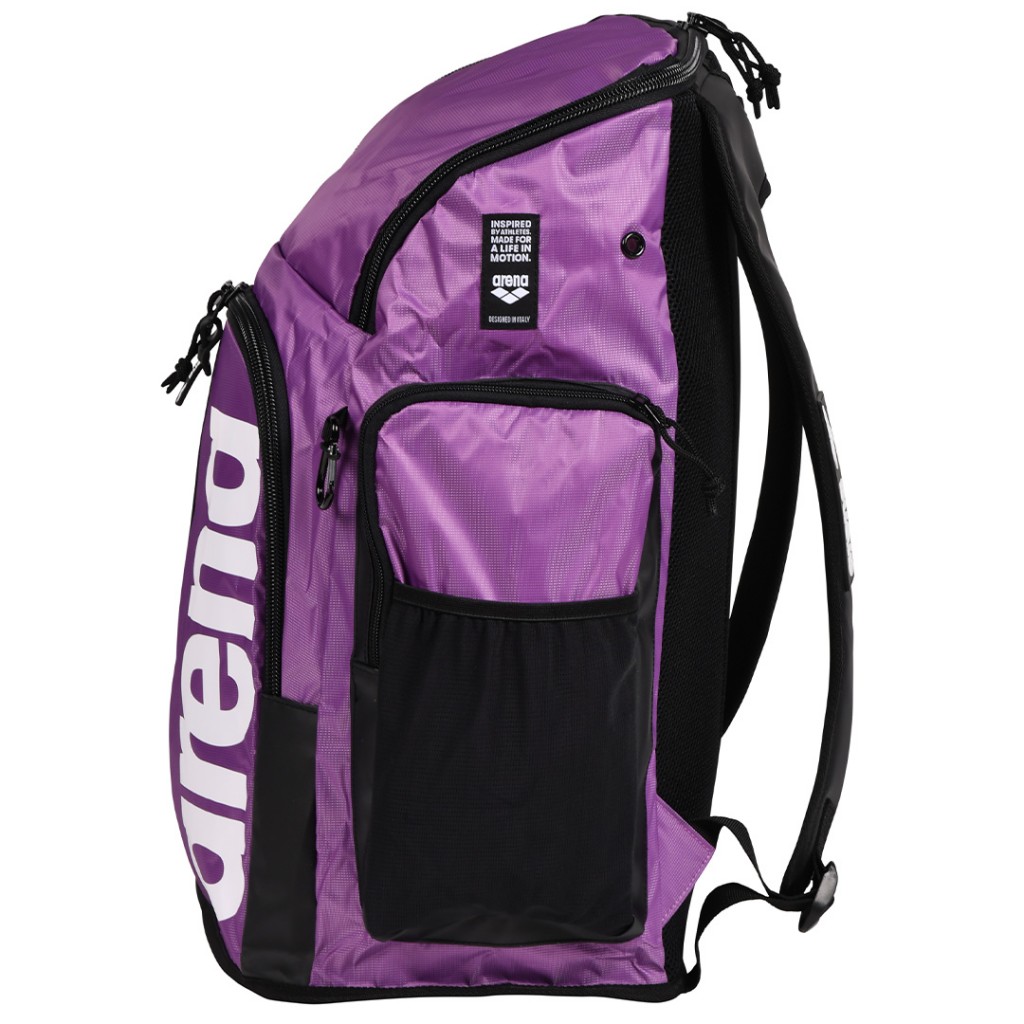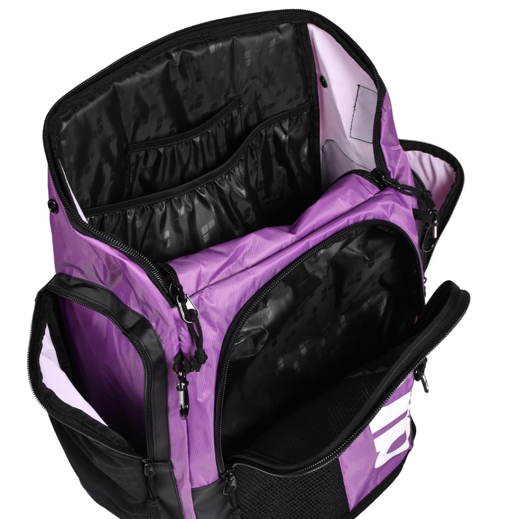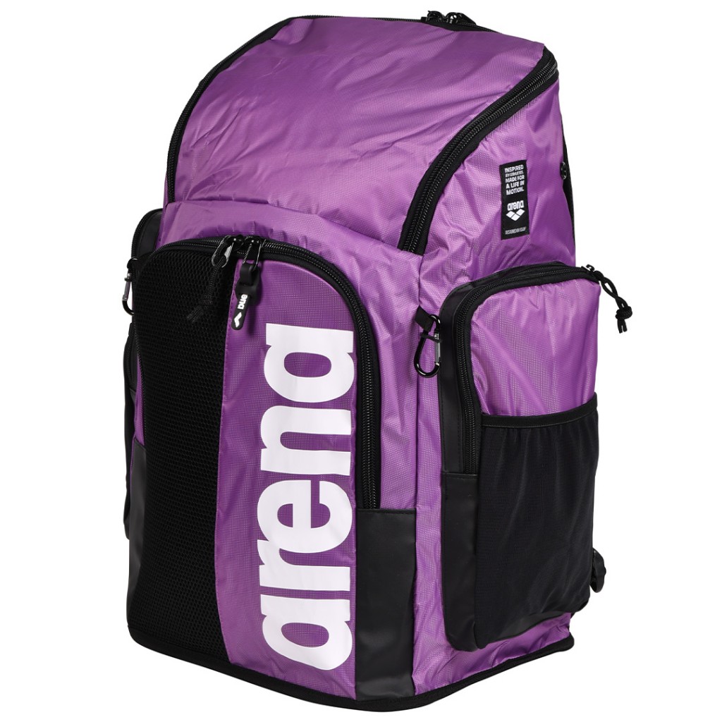 Our Spiky III 45 Backpack maximizes space in a compact design. Engineered for easy access and organization, this top-loading bag has mesh compartments to keep moisture under control post-swim or post-workout. Made of a water-repellent textile and with a reinforced bottom, you don't have to worry about falling on the changing room floor. The multiple pockets ensure there is a safe spot for all of your items. Choose from a range of slick, high-contrast colour combinations. Use the free swim bag inside for your pool kit.