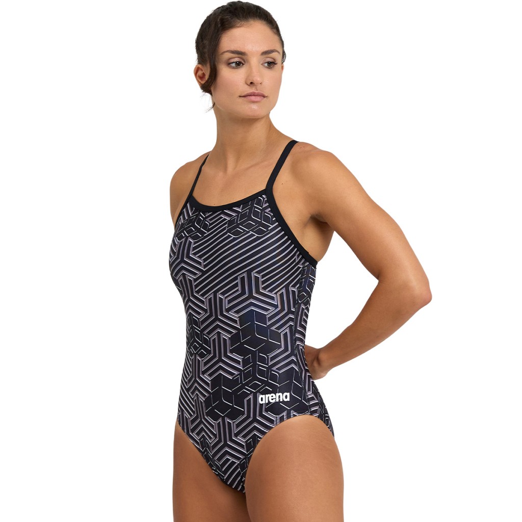 The Arena Kikko Pro Swimsuit with the Lightdrop back is a vibrant women's swimsuit layers a traditional Japanese print over an abstract motif. Crafted for long hours in the water, wear it for frequent swimming and training.